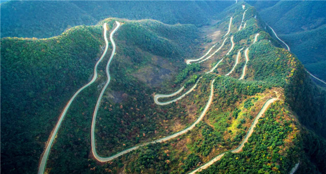 车队沿着山路继续拾坡而上,很快我们便驶入泾县—桃岭公路。桃岭公路十八弯的山路好比怒江72道拐一样惊险万分,险趣共生。整个车队一会儿踩足油门直线上升,一会儿又打足方向盘旋迂回,盘山公路的险峻考验着驾驶同学的车技和经验,也让乘车的同事们时而屏住呼吸、目光旋转,时而呐喊、欢声笑语,这就是川藏线的心动和神奇吧。